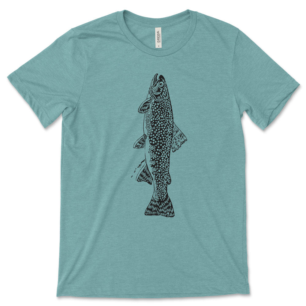 FISH ON! The Trout Tee is perfect for the Fly Fishing Enthusiast. All anglers will definitely up their "Stream-Cred" with this shirt.